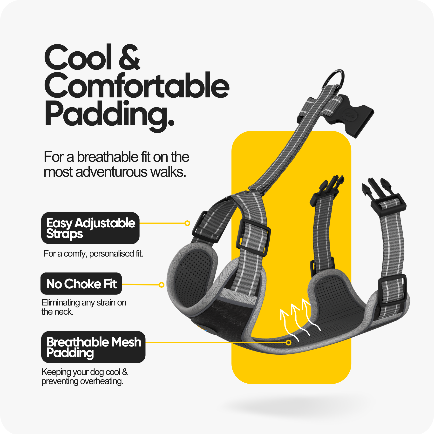 The Midnight Black dog harness combines safety and comfort with playful ease! Slip it on quickly and enjoy a secure, snug fit that keeps your pup cozy and ready for any adventure. Stylish and reliable, it’s the perfect companion from morning walks to moonlight escapades.