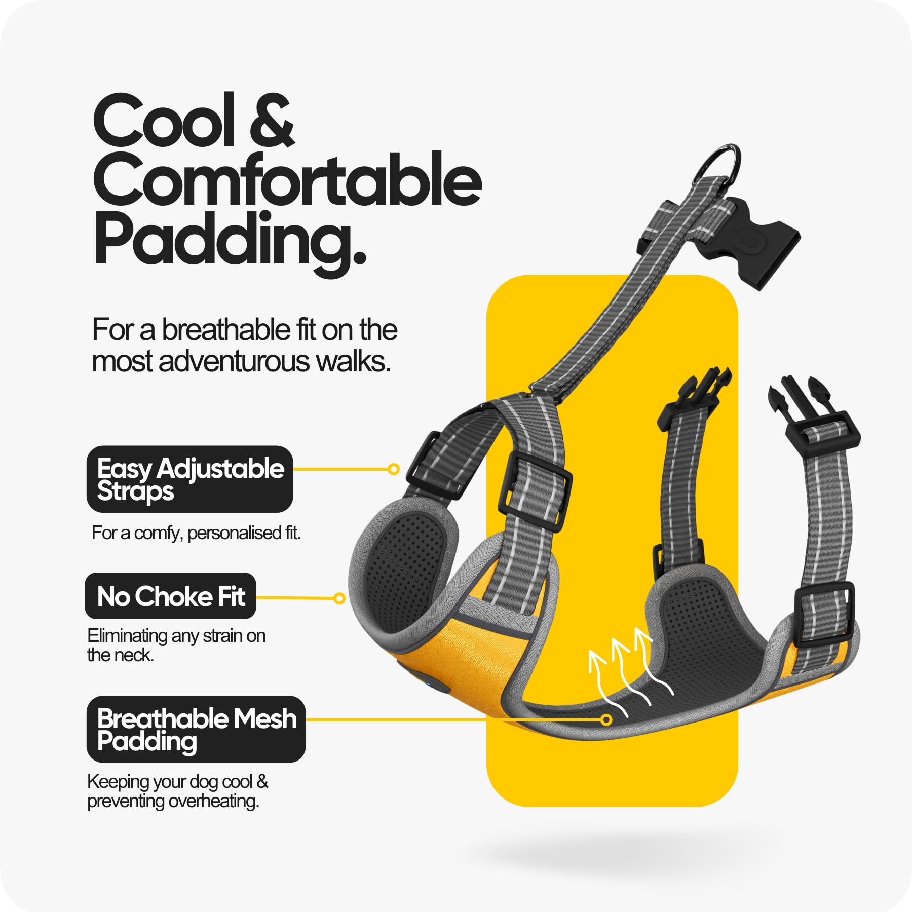 Bring sunshine to every walk with the Sunrise Yellow harness! This bright yellow harness keeps your furry friend safe and snug, combining secure straps with soft, comfy padding. It’s designed to stay put, so your dog can play and explore without any fuss. Fun, functional, and oh-so comfy—the perfect gear for happy, adventurous pups!